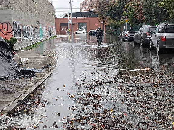 Writing my novel about catastrophic weather and earthquakes and floods—and then parts of the neighborhood got flooded last week! Over 10 inches of rain in San Francisco, the most since 1871! And more to come. Weird to be writing detailed descriptions that weeks later come to life! So it goes.