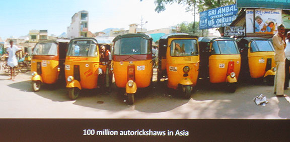 Stef Van Dongen is a contagiously enthusiastic young entrepreneur. He started a company called Enviu and sees himself as rooted in the “co-creation economy.” In fact his firm has been involved in some interesting projects. “We believe in the economy of the crowd!” he declared. One project he shared that got a warm reception was the “Sustainable Dance Club” which consists of dance floor built on electric sensors that generate electricity as the dancers bounce up and down on the floor. Their slogan for this project is “People, Planet, Party!” and you can imagine how easy a sell that is among the global dance club culture. Facing a greater challenge, they launched a project to change the noisy, polluting technology of the ubiquitous autorickshaws (TukTuks) that fill the cities of Asia. They launched a “Hybrid TukTuk Battle“ among a half dozen design faculties on campuses in India and Holland and after the dust settled two winners emerged, one with the 2-stroke engine and another for the 4-stroke engine. A partnership was established between Enviu and an Indian entrepreneur, leading to the founding of SocioEnviro, whose goals are stated on the Enviu website: