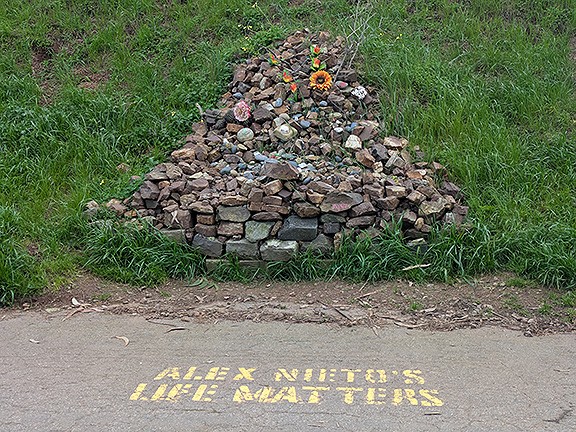 Meanwhile, monuments continue to get made to meet the needs of actual people. Here’s the Alex Nieto memorial on the side of Bernal Heights, not far from where he was murdered by a hail of police bullets in 2014.